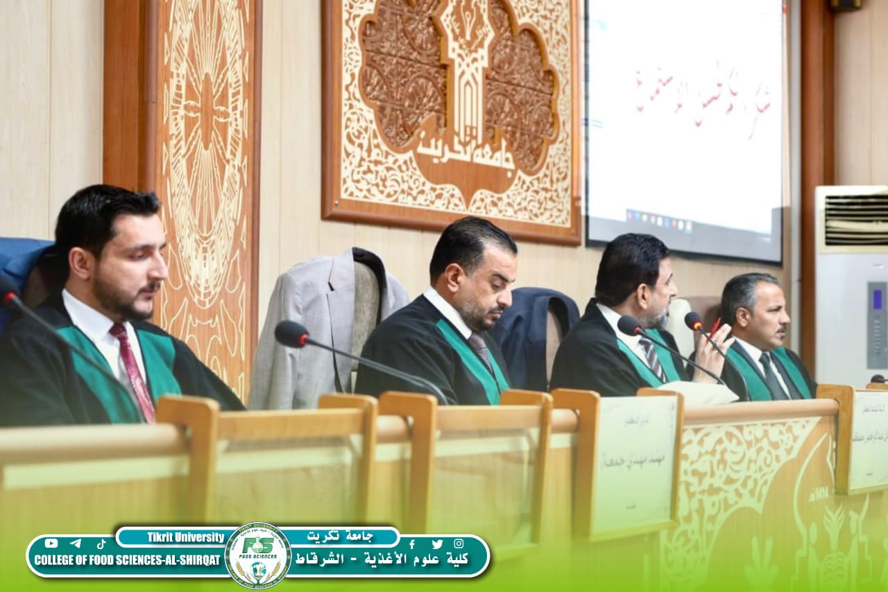شارك المدرس الدكتور مهند مهدي جمعة، رئيس قسم تكنولوجيا الأغذية في كليتنا، في عضوية لجنة مناقشة رسالة الماجستير للطالبة آية طارق زايد في جامعة تكريت – كلية الزراعة / قسم علوم الأغذية، وذلك يوم الأحد الموافق 1 آذار 2026.
