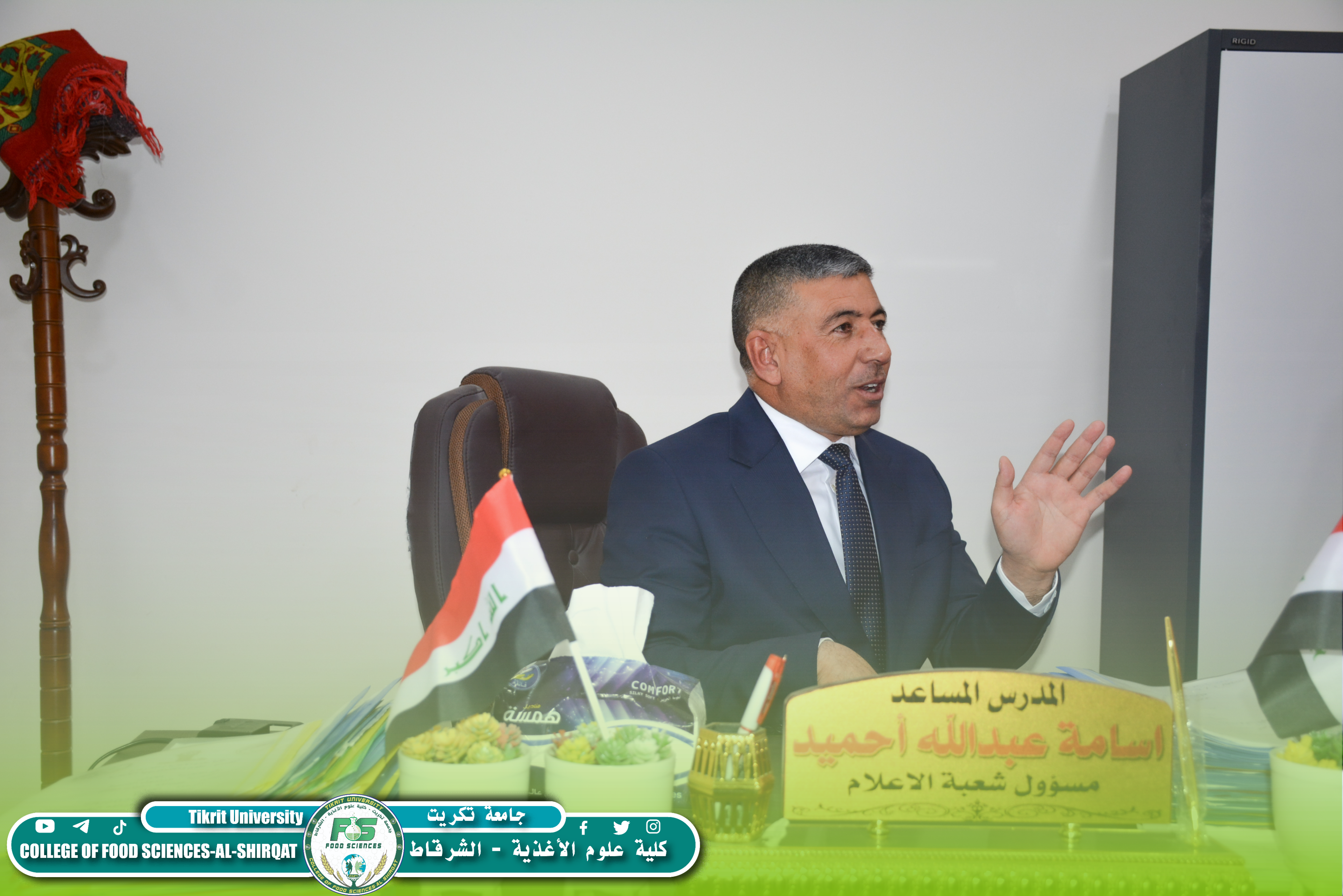 تنفيذاً لتوجيهات رئيس جامعة تكريت الأستاذ الدكتور وعد محمود رؤوف، أجرى مساعد رئيس الجامعة للشؤون الإدارية والمالية الأستاذ الدكتور حامد محمد صالح زيارة تفقدية إلى كلية علوم الأغذية، للاطلاع على واقع العمل الإداري والخدمي فيها.