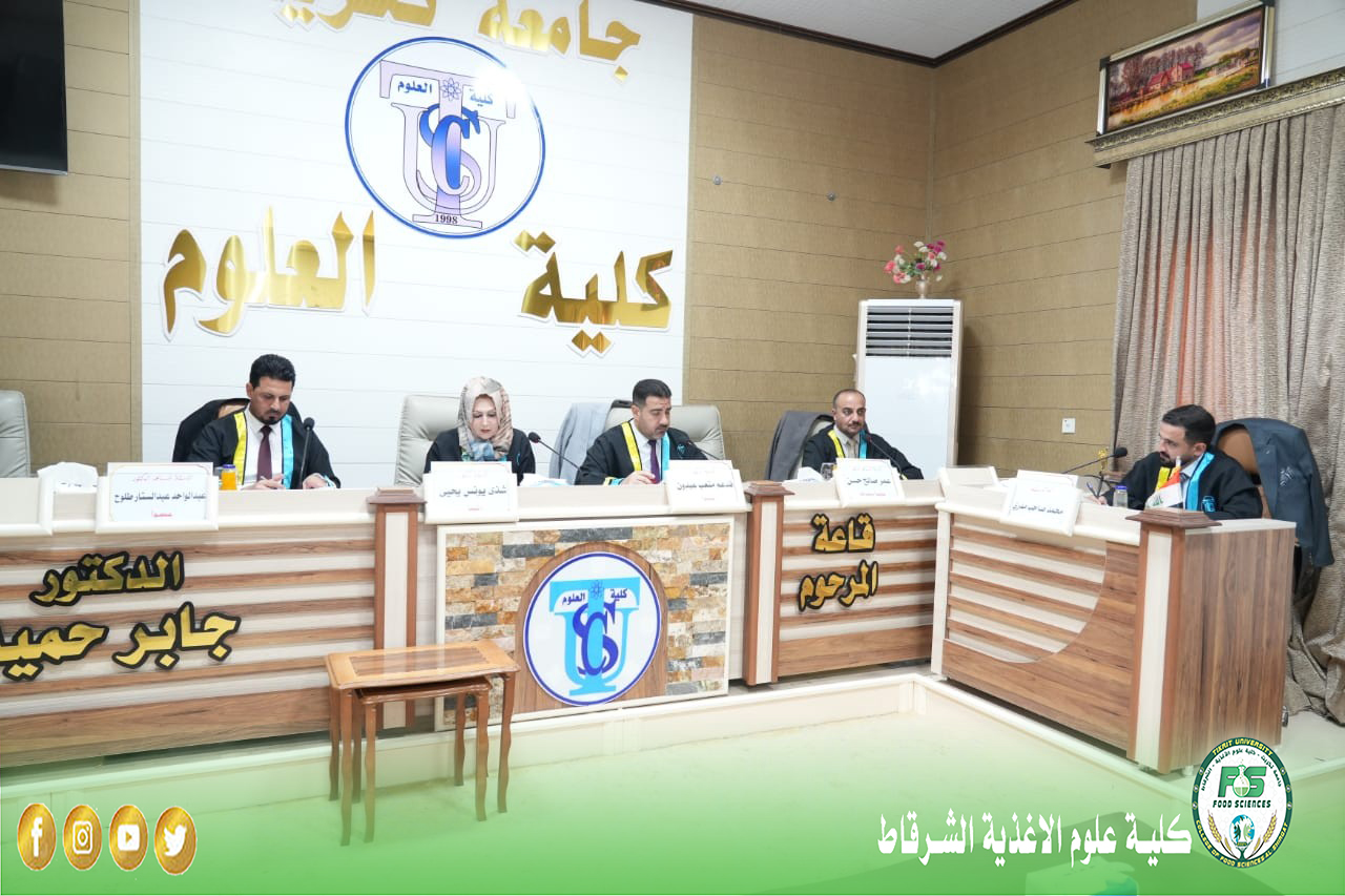 وقد جرت المناقشة بحضور عدد من التدريسيين والباحثين، حيث تمت مناقشة الرسالة بشكل مستفيض، وتقديم ملاحظات علمية قيمة أسهمت في إغنائها وتعزيز نتائجها البحثية. وفي ختام المناقشة أجيزت الرسالة بعد إجراء التعديلات اللازمة، مع الإشادة بجهود الطالب وأهمية موضوعه في خدمة الجانب التطبيقي في مجال الأدوية والصيدلة