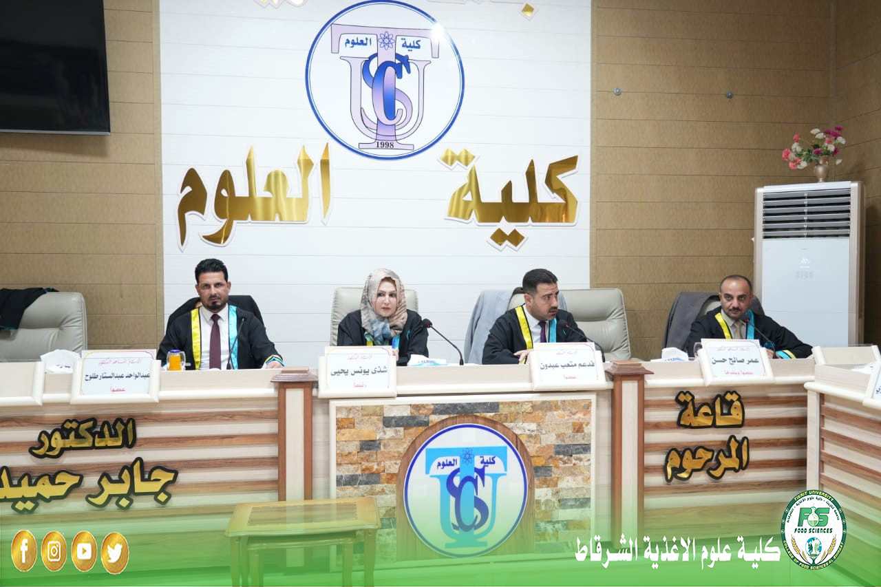وقد جرت المناقشة بحضور عدد من التدريسيين والباحثين، حيث تمت مناقشة الرسالة بشكل مستفيض، وتقديم ملاحظات علمية قيمة أسهمت في إغنائها وتعزيز نتائجها البحثية. وفي ختام المناقشة أجيزت الرسالة بعد إجراء التعديلات اللازمة، مع الإشادة بجهود الطالب وأهمية موضوعه في خدمة الجانب التطبيقي في مجال الأدوية والصيدلة